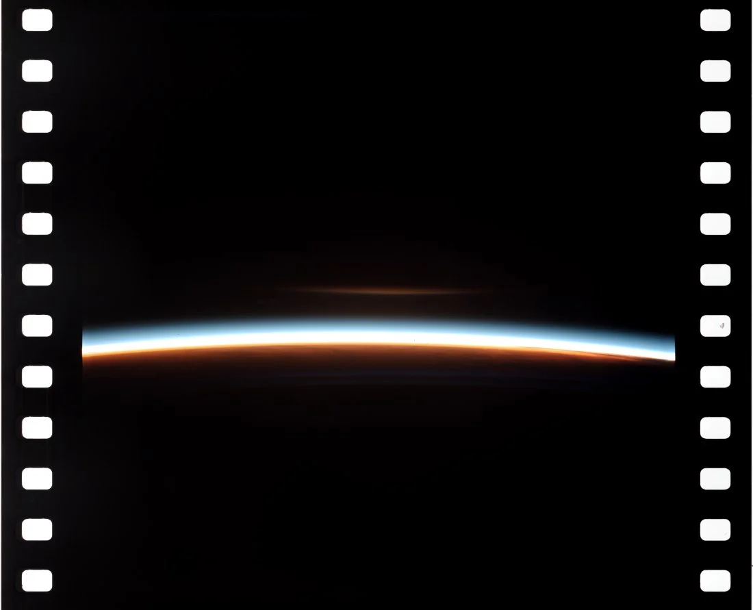 Il sottilissimo strato dell'atmosfera terrestre catturato dall'Apollo 9 durante un'alba orbitale. Magazine 20, Ektachrome SO-368 a 64 ASA.