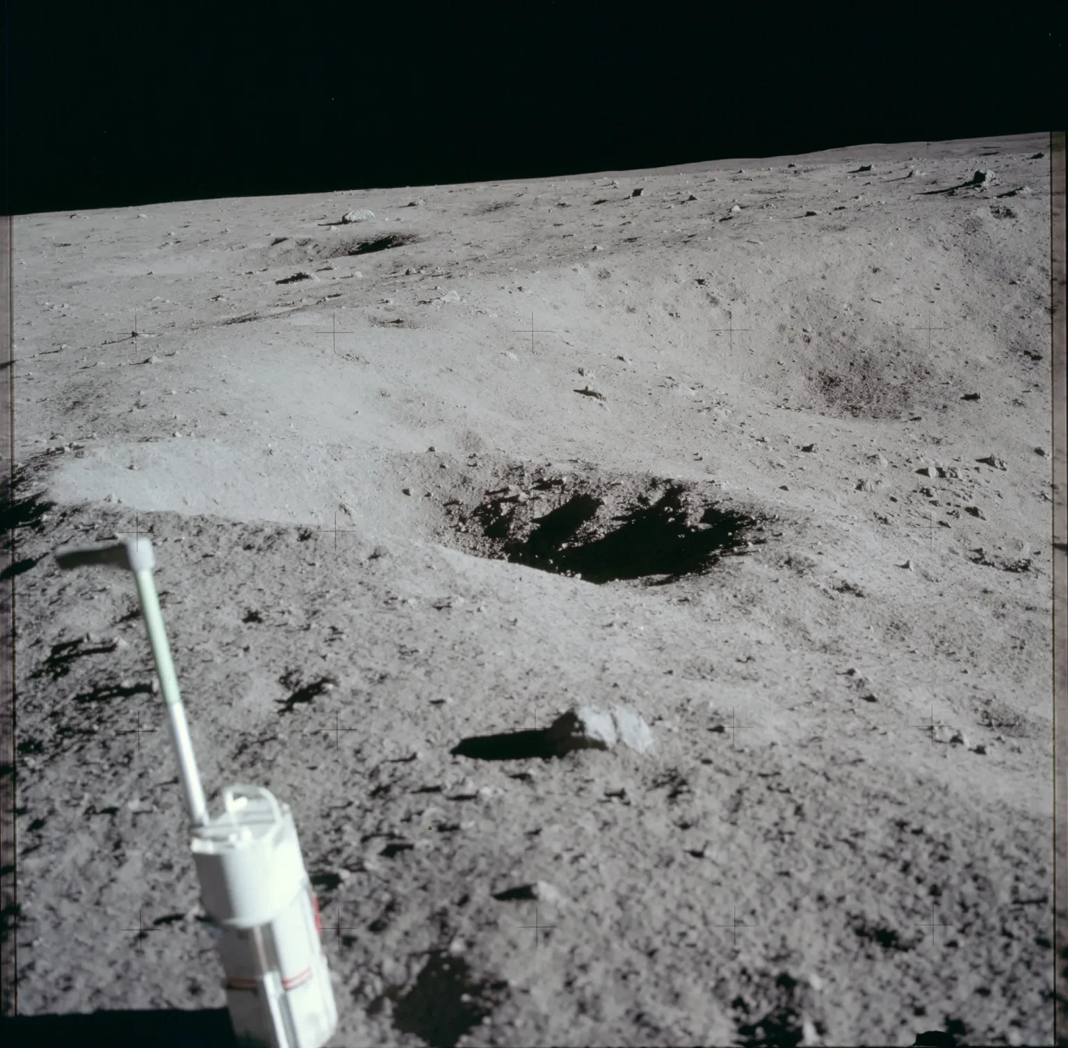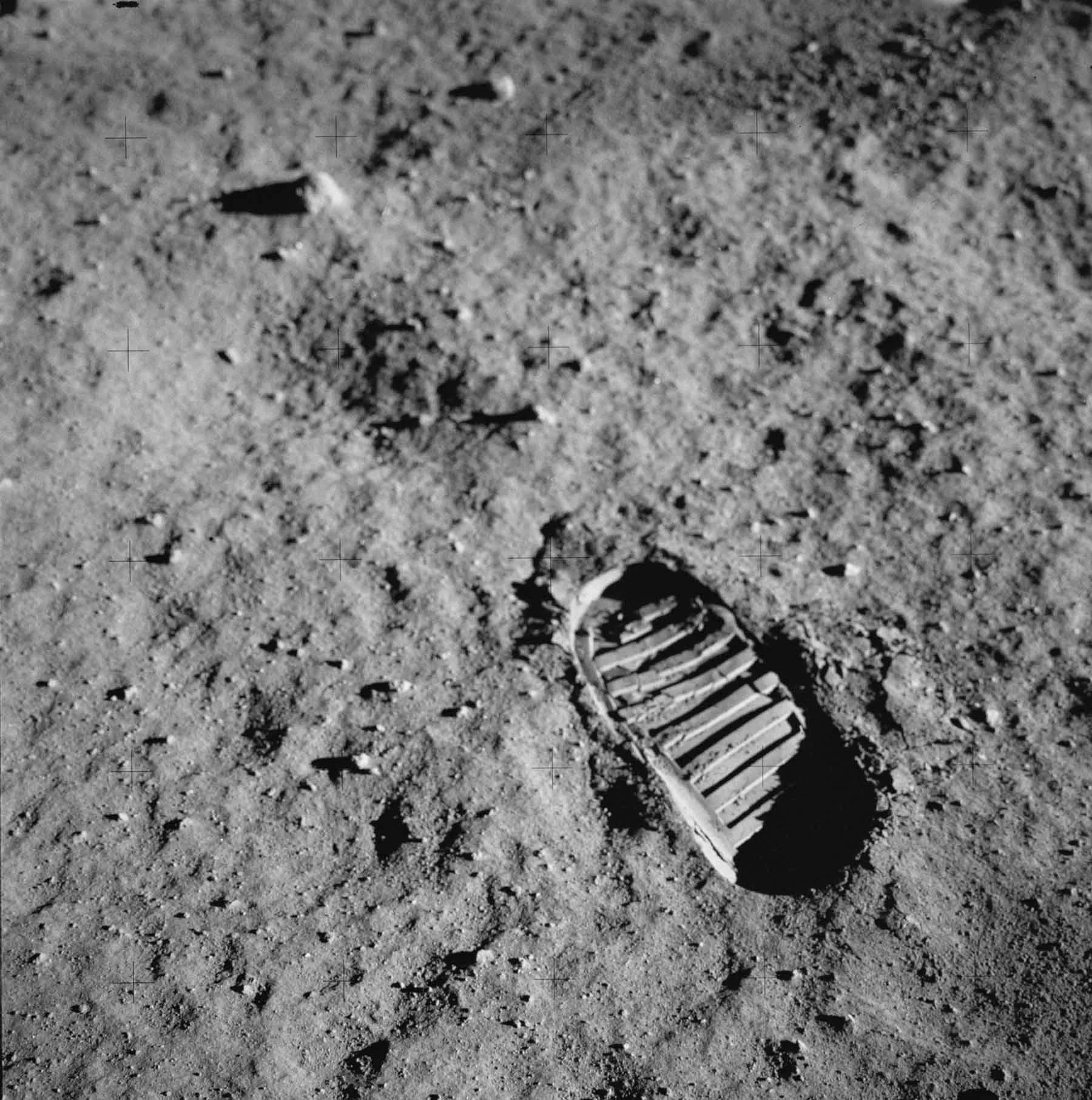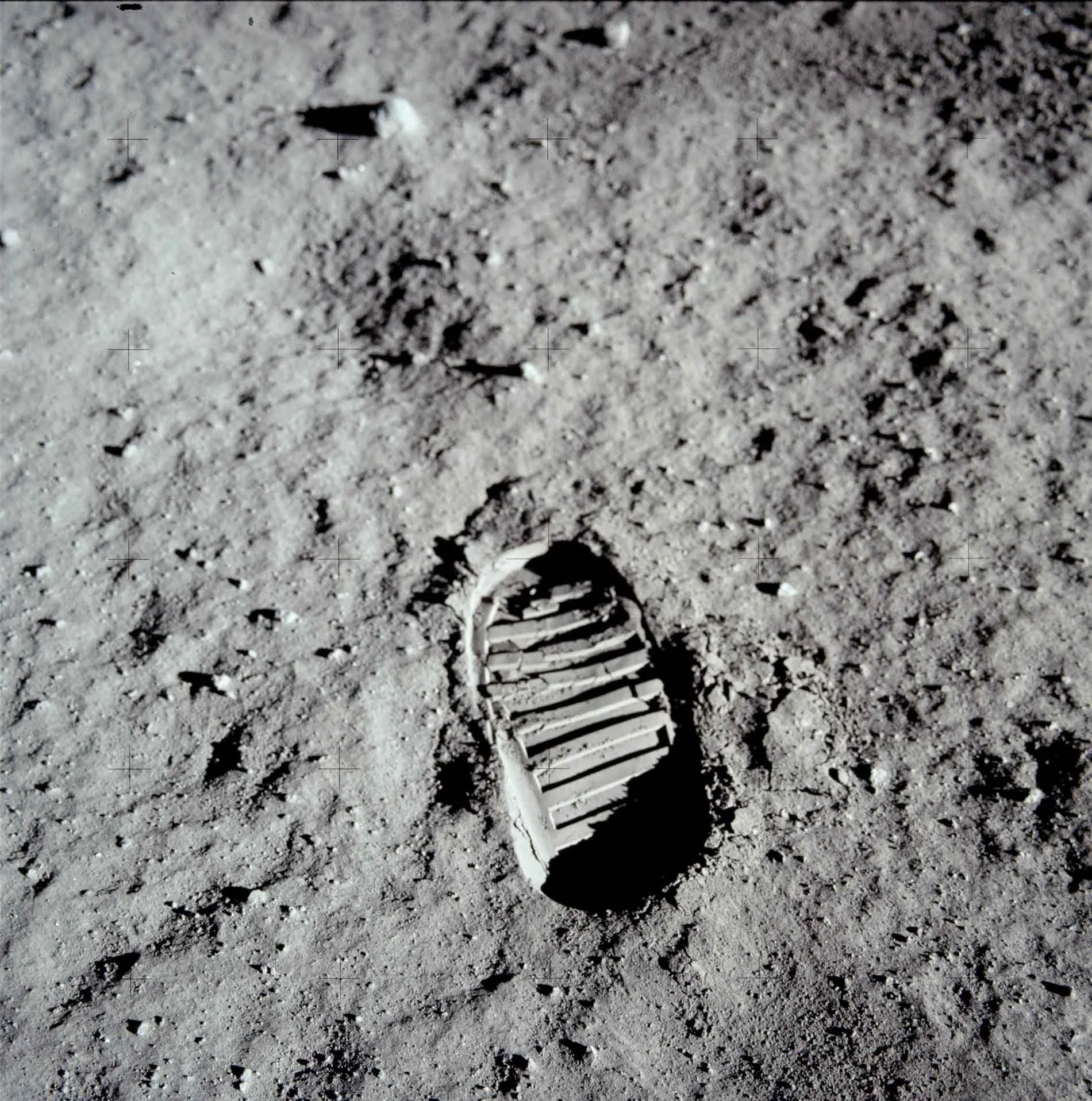Il numero di fotogramma per la foto dell’impronta di stivale più famosa delle missioni successive, per confronto, è AS17-141-21593: la stessa struttura, la stessa pellicola, ma con la scala delle colline del Taurus-Littrow sullo sfondo che conferisce alle foto dell’Apollo 17 una profondità spaziale assente nell’Apollo 11.